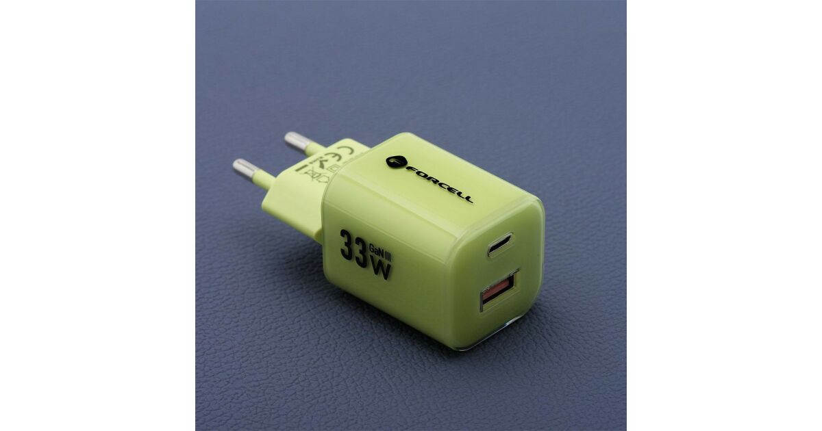 Forcell F-Energy GaN III Crystal Color USB C + USB A QC4.0 PD 33W Telefon töltő + USB C - USB C Kábel VT-41 Zöld leírása
