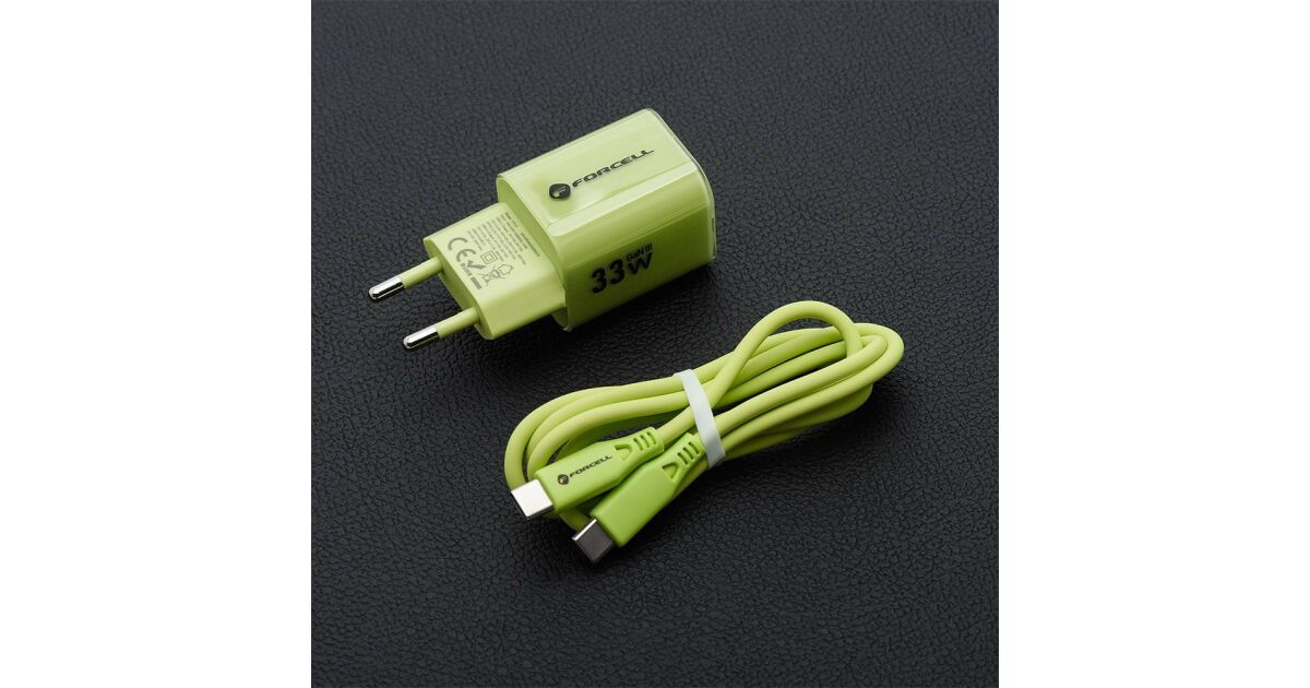 Forcell F-Energy GaN III Crystal Color USB C + USB A QC4.0 PD 33W Telefon töltő + USB C - USB C Kábel VT-41 Zöld