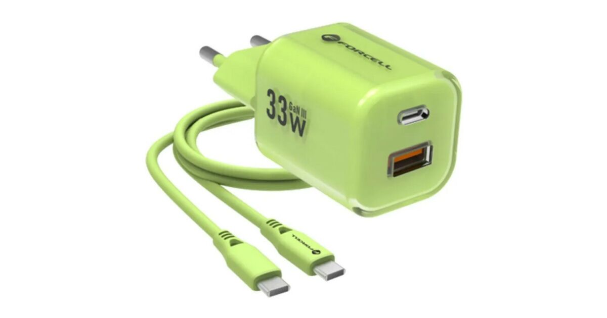 Ezt a terméket így is ismerheted: Forcell F-Energy GaN III Crystal Color USB C + USB A QC4.0 PD 33W Telefon töltő + USB C - USB C Kábel VT-41 Zöld