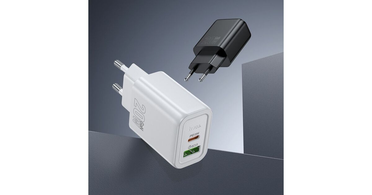 Ez a Hoco N61 fali töltő tökéletes választás, ha gyorsan és biztonságosan szeretnéd tölteni mobileszközeidet. Kettős USB kimenetével (USB-C és USB-A) egyszerre két eszközt is tölthetsz, időt és energiát takarítva meg. A 20W teljesítménynek köszönhetően a töltés gyors és hatékony.