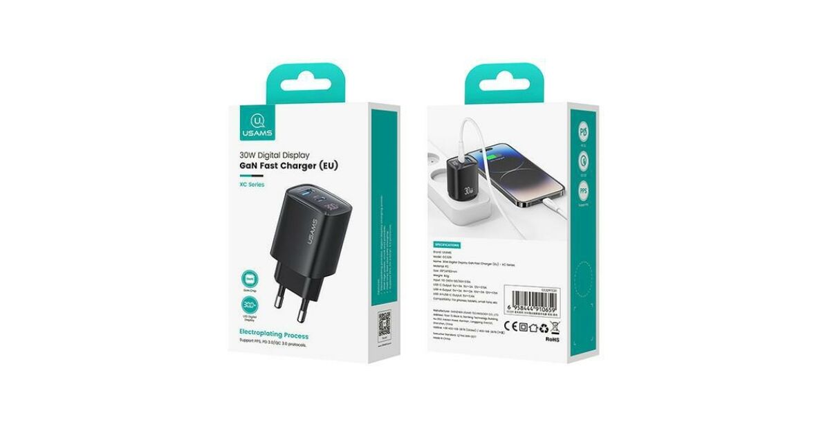USAMS 30W GaN Gyorstöltő - USB-C és USB-A Portokkal ⚡️