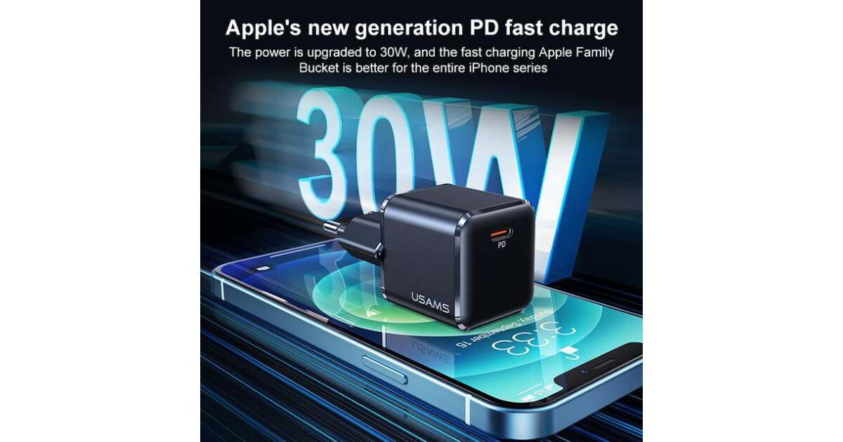 USAMS T45 30W USB-C Gyors Töltő: Ultrakompakt, Gyors Töltési Sebesség ⚡