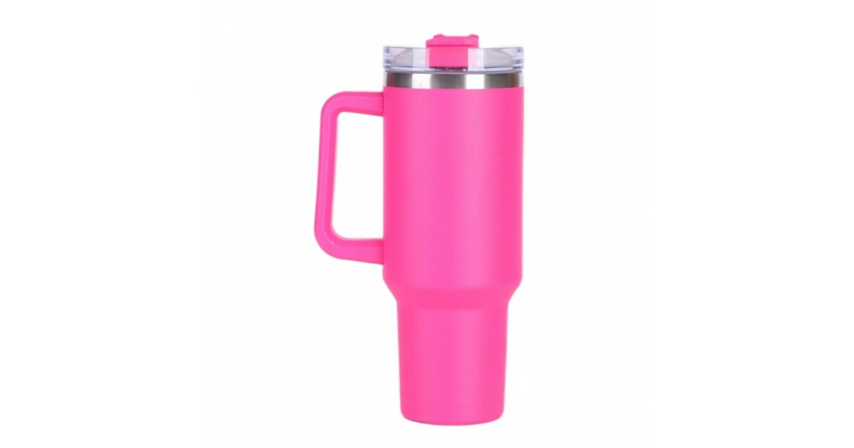 Ezt a terméket így is ismerheted: Nagy praktikus termosz bögre fogantyúval és szalmával 1L rózsaszín CUP10