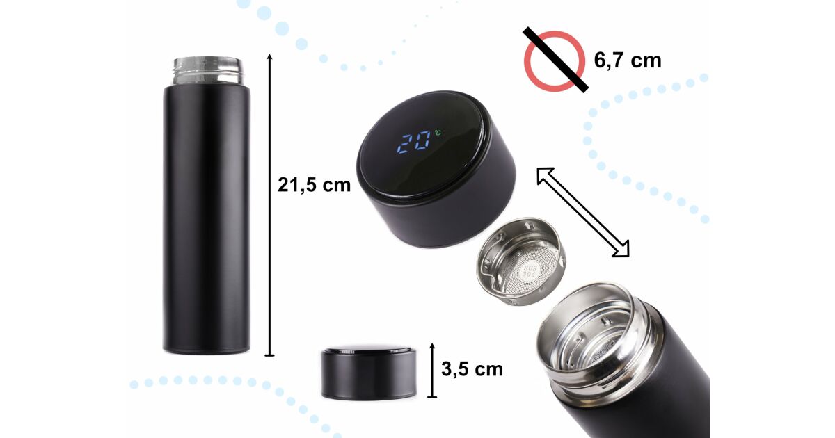 Ez az elegáns, fekete termosz bögre tökéletes választás a rohanó hétköznapokra. 500 ml űrtartalmú, így egész napra elegendő ital elfér benne. A beépített LED hőmérővel mindig ellenőrizheti italának hőmérsékletét, így búcsút inthet a túl forró vagy túl hideg meglepetéseknek! A felhasználók kiemelik a termék könnyű használatát és a praktikus méreteket.