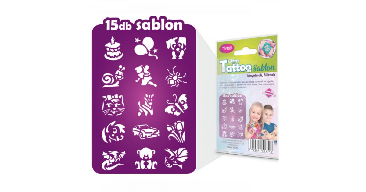 TyToo: Születésnapi csillámtetoválás sablon szett 15db-os leírása