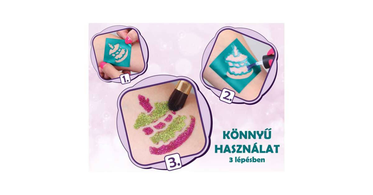 Könnyű használat: Egyszerűen helyezd a sablont a bőrre, kend fel a csillámragasztót, majd távolítsd el a sablont. Ennyi az egész! 😉