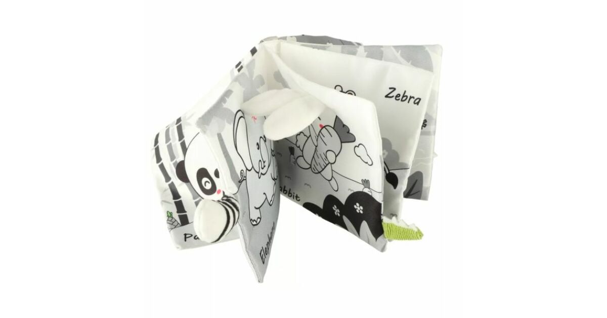 Babáknak való érzékszervi fejlesztő textilkönyv - vidám állatfigurákkal 🦉🐼🐒