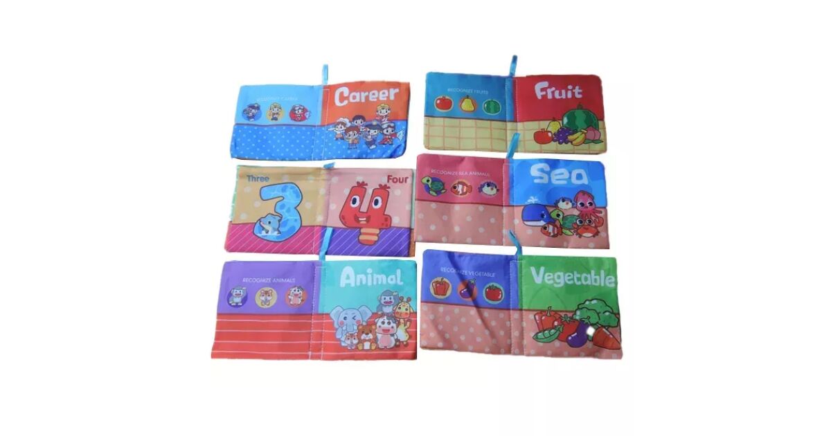 Ez a 6 darabos színes textil könyv készlet tökéletes választás a legkisebbek számára! Puha, strapabíró anyagból készült, így biztonságos és tartós játékot nyújt.
