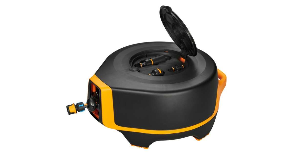 - 🧰 Minden szükséges tartozék: 20 m hosszú, 13 mm-es (½”) automatikus visszatekeredő tömlő, csatlakozók és öntözőfej (praktikus tárolóval).
