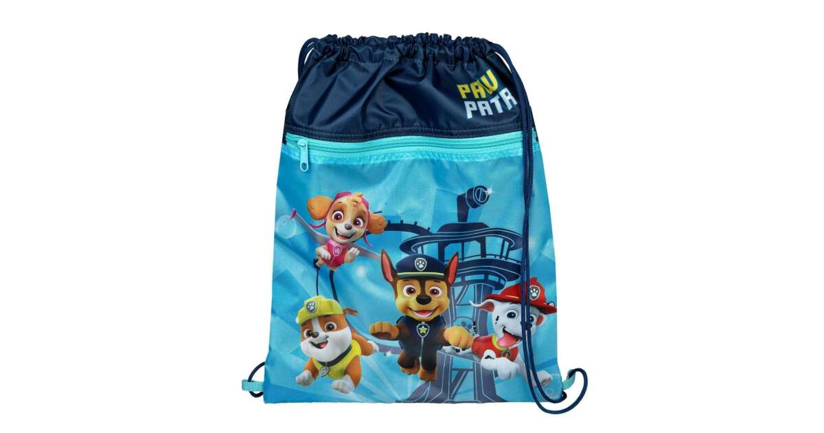 Ez a vidám Mancs őrjárat mintás tornazsák ideális választás gyermeked számára a tornafelszerelés tárolására. Skye, Chase, Rubble és Marshall kedvenc kutyusai vidám grafikával díszítik a zsákot, így a kicsik imádni fogják! A zsák könnyen zárható és nyitható a tetején található zsinórral, így a pakolás gyerekjáték.