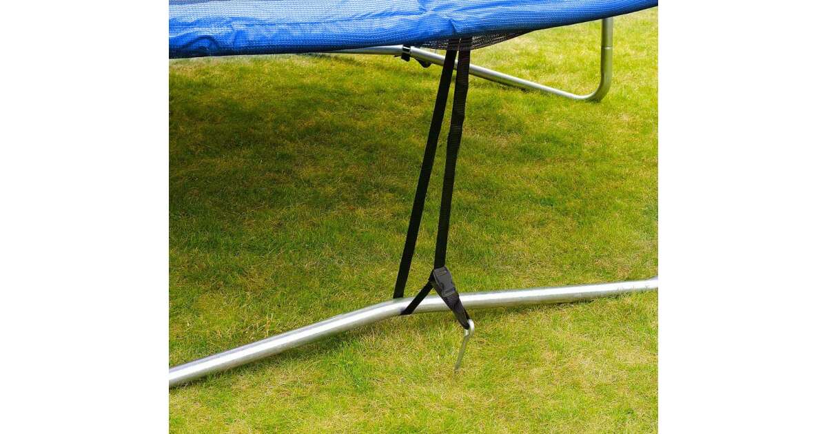 - Könnyű telepítés: A horgonyokat egyszerűen be kell csavarni a talajba, majd a hevederekkel rögzíteni a trambulint.