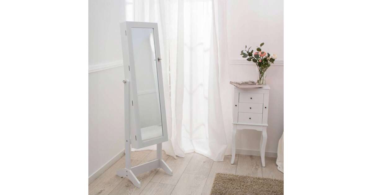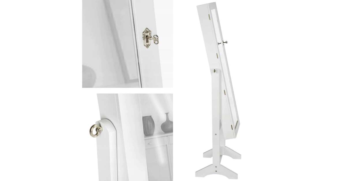 Ez a gyönyörű, 140 cm magas tükrös ékszer szekrény tökéletes megoldás ékszereinek rendezett tárolására és a mindennapi készülődéshez. A nagy tükör praktikus, a puha plüss belső pedig védi értékes darabjait.