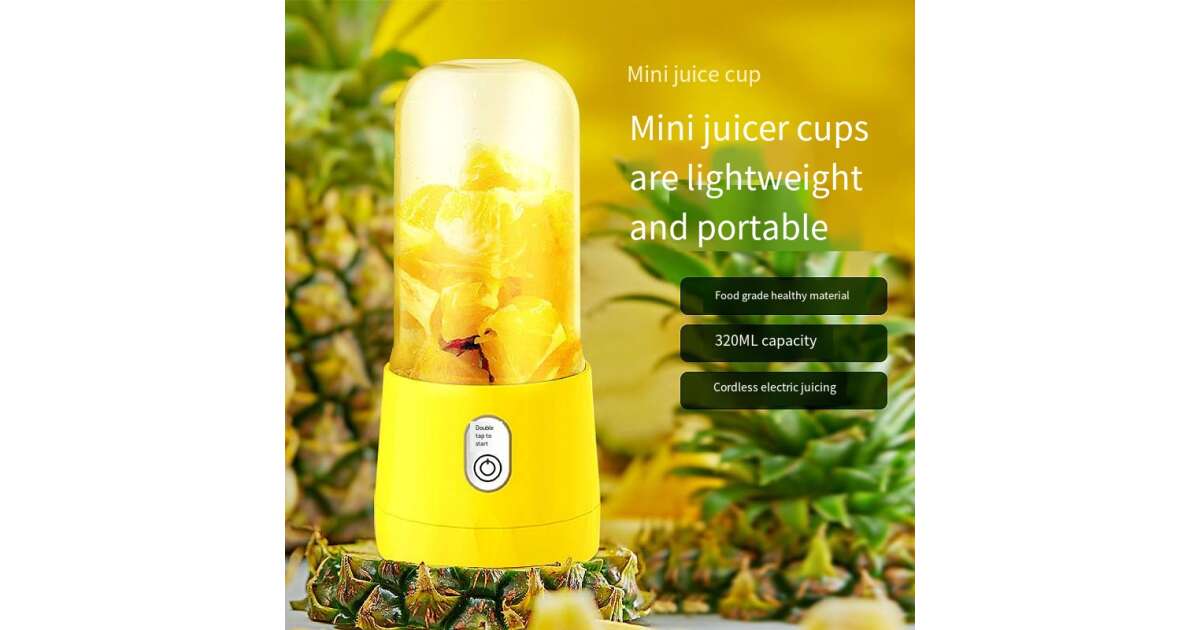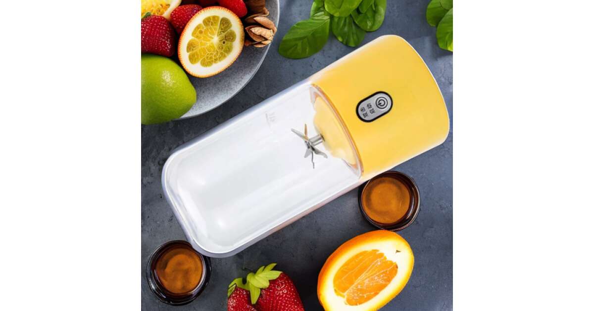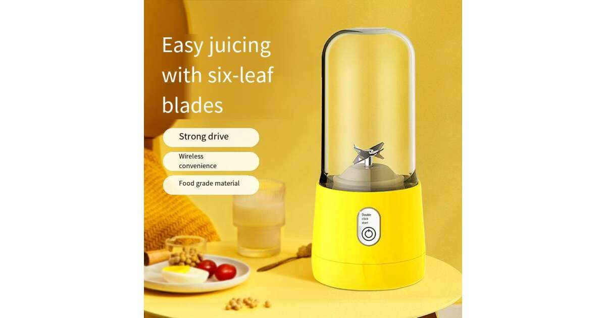 Mini elektromos turmixgép, MYRIVER, 35 W, 1800 ford./perc, hordozható, többfunkciós, Öntisztító, nagyfokú autonómia, űrtartalom 410 ml, 6 db 3D penge, akkumulátor, sárga vélemények