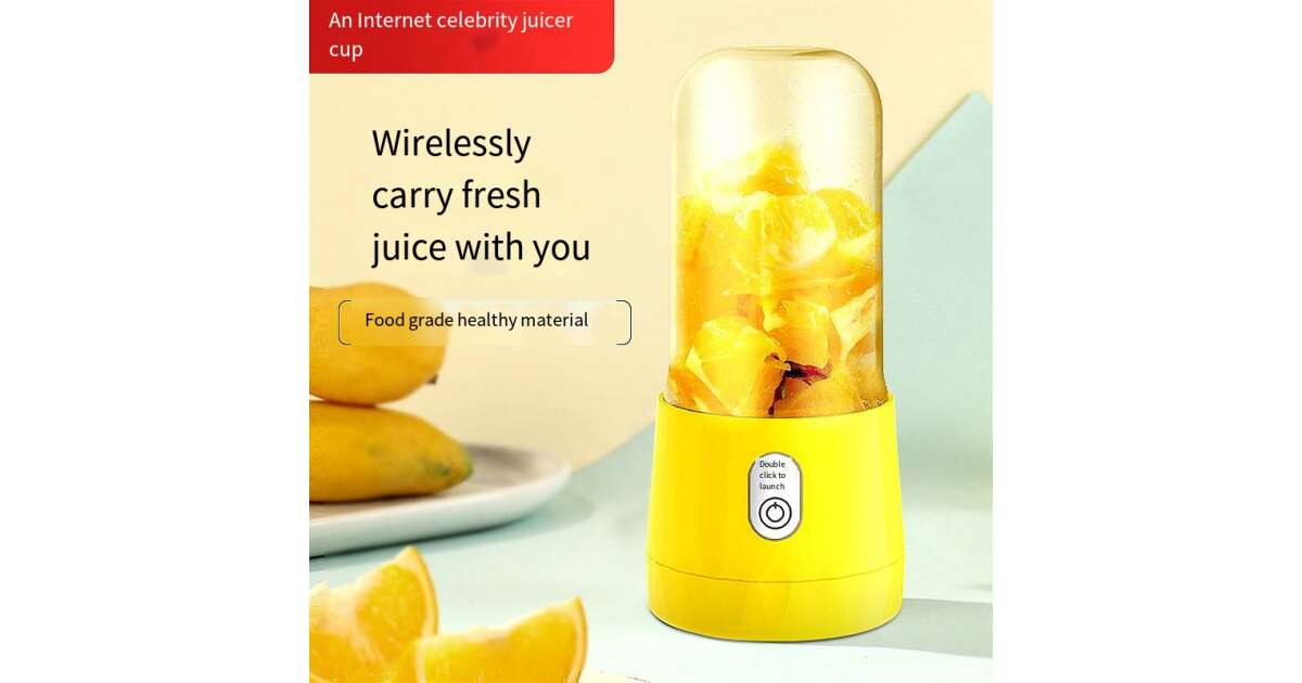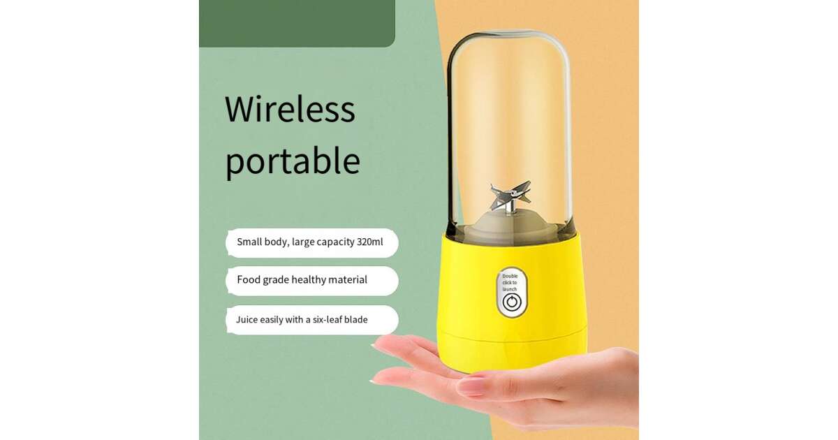 Ezt a terméket így is ismerheted: Mini elektromos turmixgép, MYRIVER, 35 W, 1800 ford./perc, hordozható, többfunkciós, Öntisztító, nagyfokú autonómia, űrtartalom 410 ml, 6 db 3D penge, akkumulátor, sárga