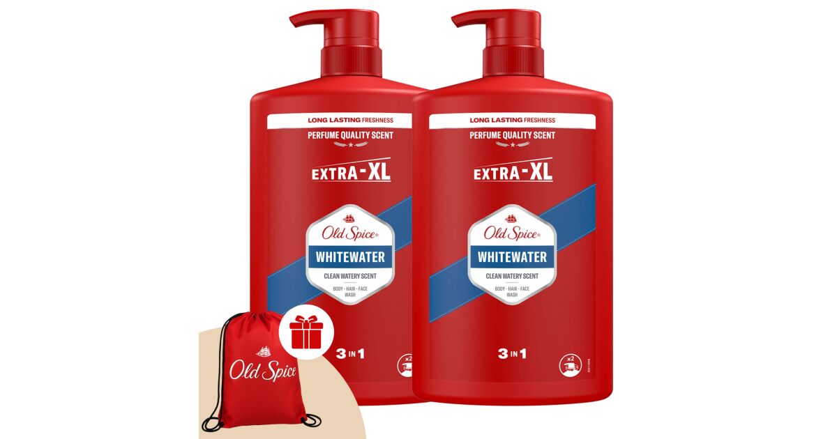 Old Spice Whitewater 3in1 férfi Sampon és Tusfürdő 2x1000ml + Ajándék Old Spice Tornazsák