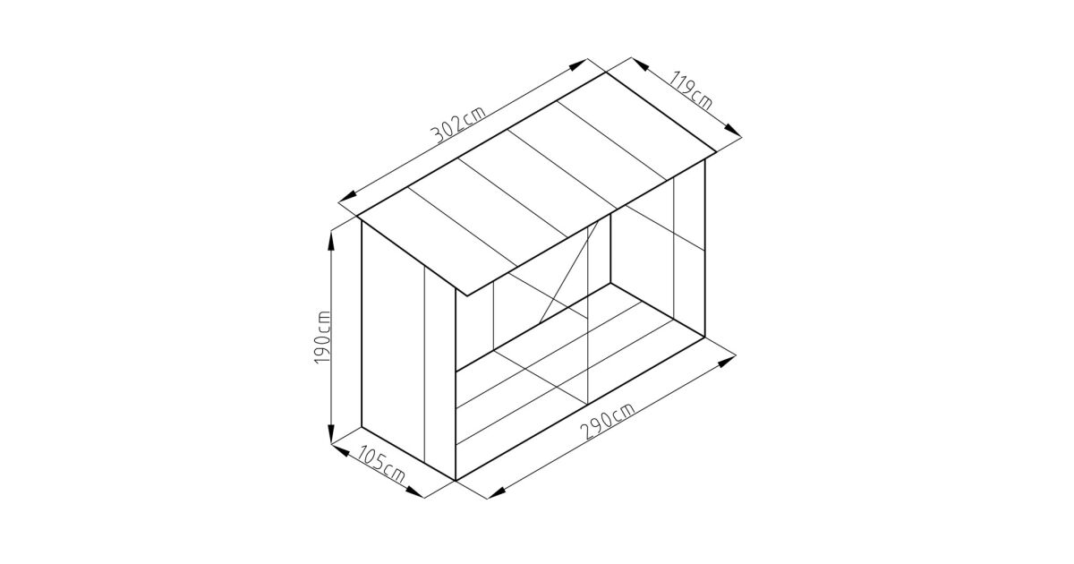 | Méretek (tetővel) | 302 x 190 x 119 cm |