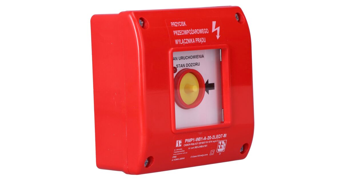 Tűzvédelmi (PPOŻ) áramkapcsoló kalapáccsal PWP1-W01-A-20-2LED7\M leírása
