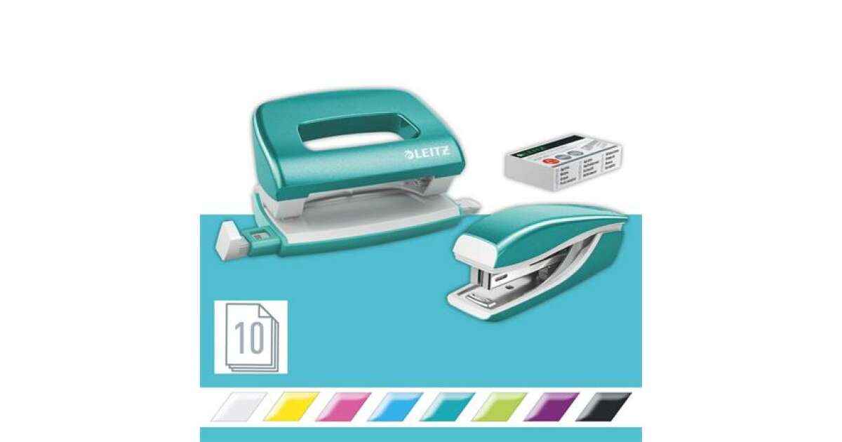 A Leitz Wow Mini tűzőgép és lyukasztó szett tökéletes választás otthoni, irodai vagy útközbeni használatra. Kompakt méretének és divatos jégkék színének köszönhetően feldobja a munkanapokat. A szett tartalmaz egy tűzőgépet és egy lyukasztót, így minden szükséges eszköz kéznél van a papírok rendszerezéséhez.