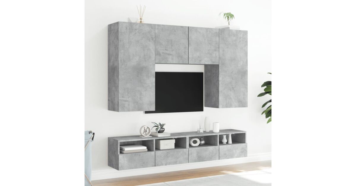 Modern betonszürke fali TV szekrény szett - Stílus és tárolás egyben! 📺