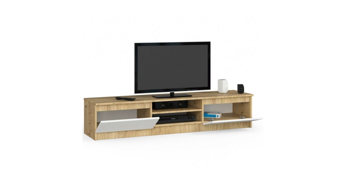 Akord - Modern RTV Szekrény K160 CLP Dió Artisan/Fehér – 2 Ajtós, Lemezelt Bútorlap, Mat Felület, 160x33x40 cm, Szekrény Összeszerelés, Elegáns Tárolási Megoldás vásárlás:
