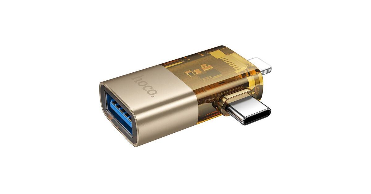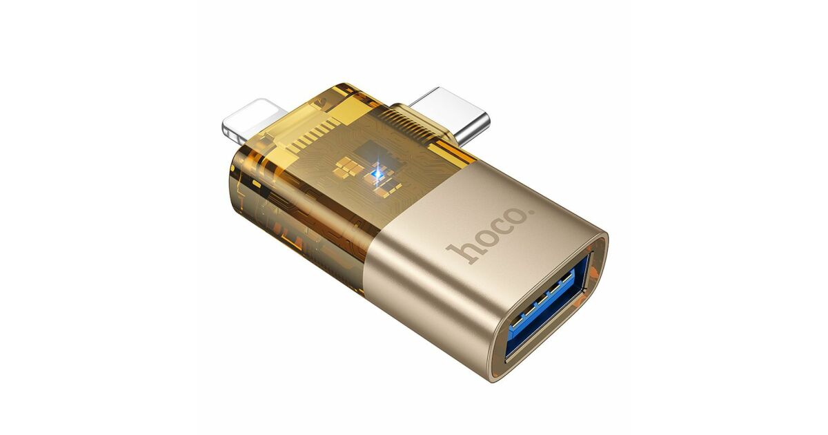 Ezt a terméket így is ismerheted: Adapter: Hoco UA36E - Lightning / Type-C (USB-C) / USB - OTG adapter, arany