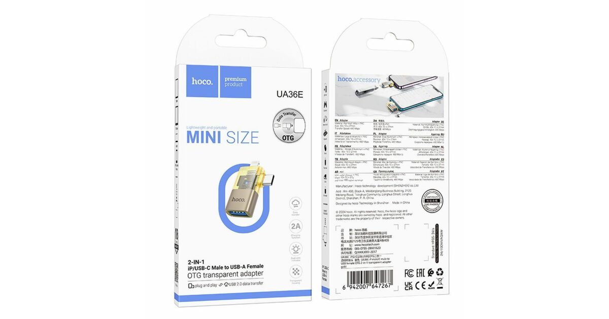 Ez a kompakt és sokoldalú Hoco UA36E adapter lehetővé teszi az adatátvitelt és a töltést iPhone, USB-C és USB eszközök között. Kényelmesen használhatod fájlok átvitelére, külső eszközök csatlakoztatására és a készüléked töltésére is. ✨