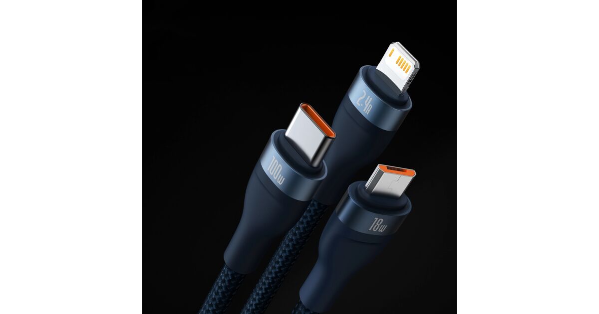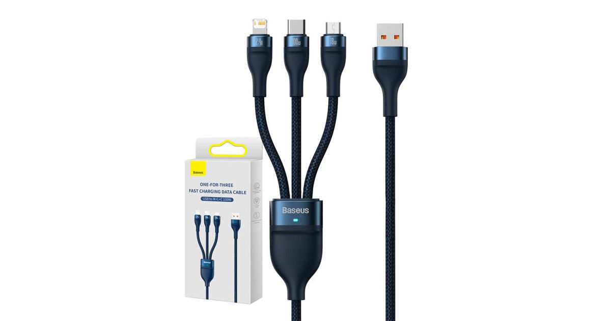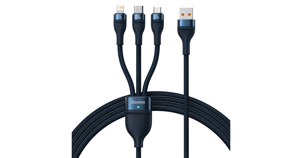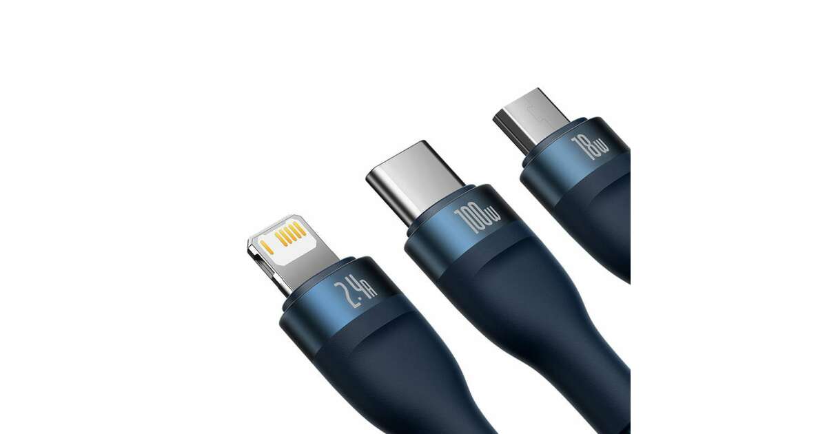 Baseus Flash Series 3 az 1-ben USB-kábel, USB-C + micro USB + Lightning, 100W, 1.2m (kék)