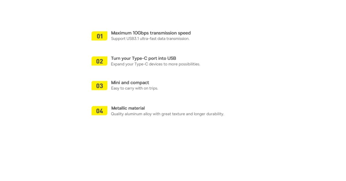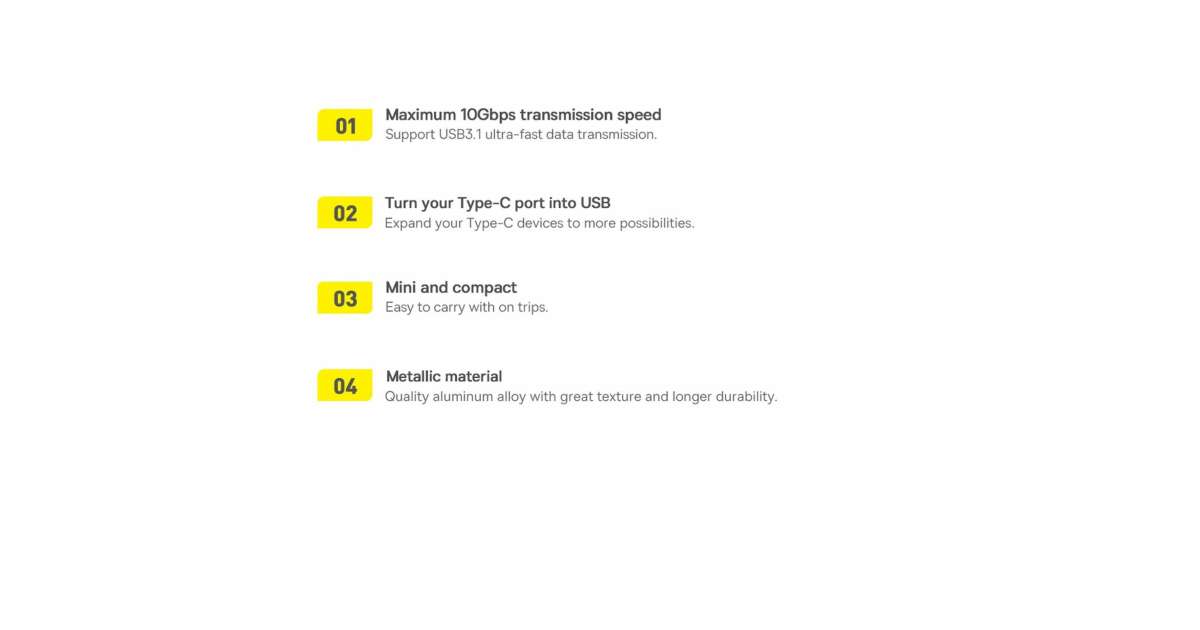 Ez a kompakt és strapabíró Baseus Ingenuity USB-C - USB-A adapter tökéletes megoldás az eszközök közötti adatátvitelhez. Élvezze a legfeljebb 10 Gbps sebességű adatátvitelt! ⚡