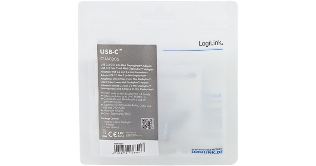 Logilink USB 3.2 Gen2 Type-C adapter, USB-C/M to mDP/F, 8K, alu, fekete/szürke vélemények