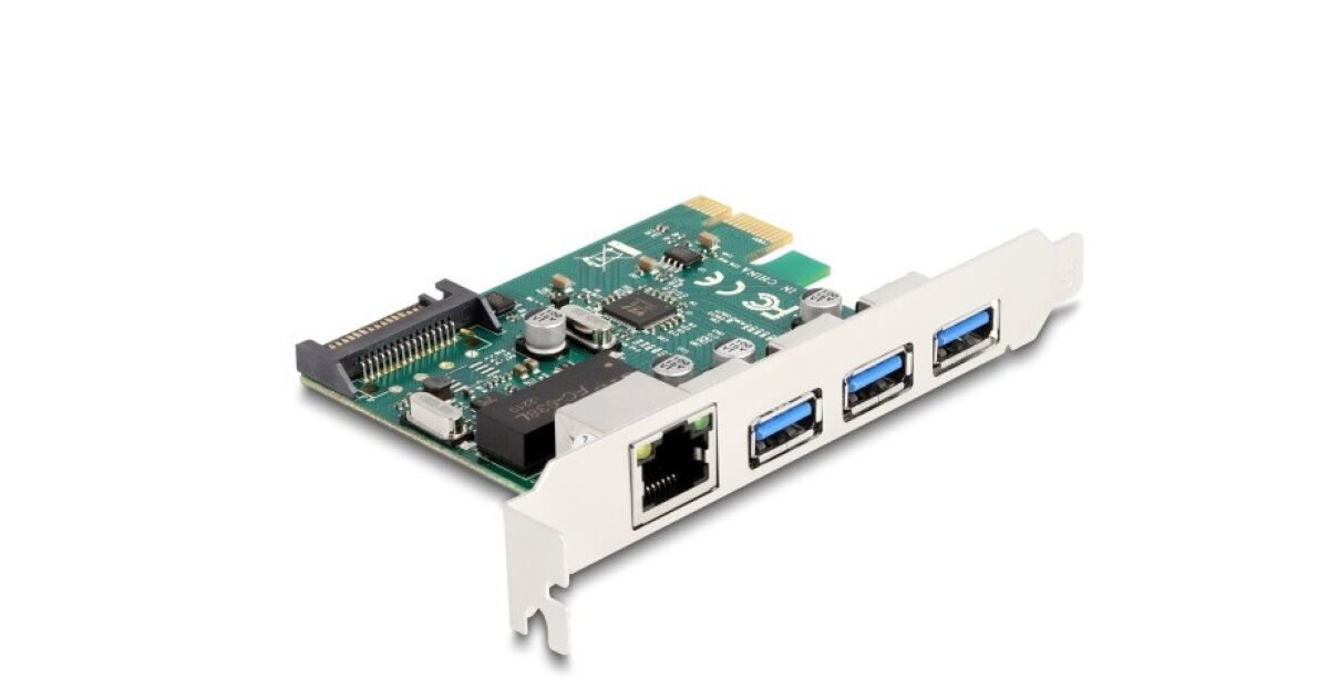 Delock PCI Express x1 Kártya - 3 x USB 5 Gbps A-típusú anya + 1 x Gigabit LAN