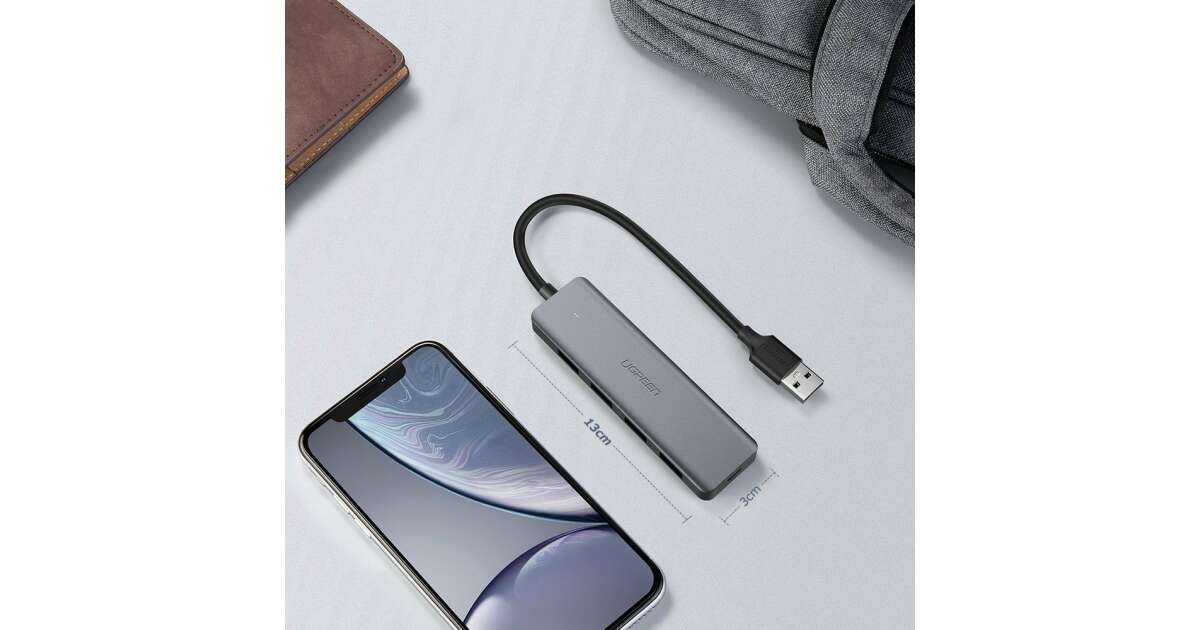Adapter 4 az 1-ben UGREEN USB Hub 4x USB 3.0 + USB-C (szürke) csatlakozóhoz leírása