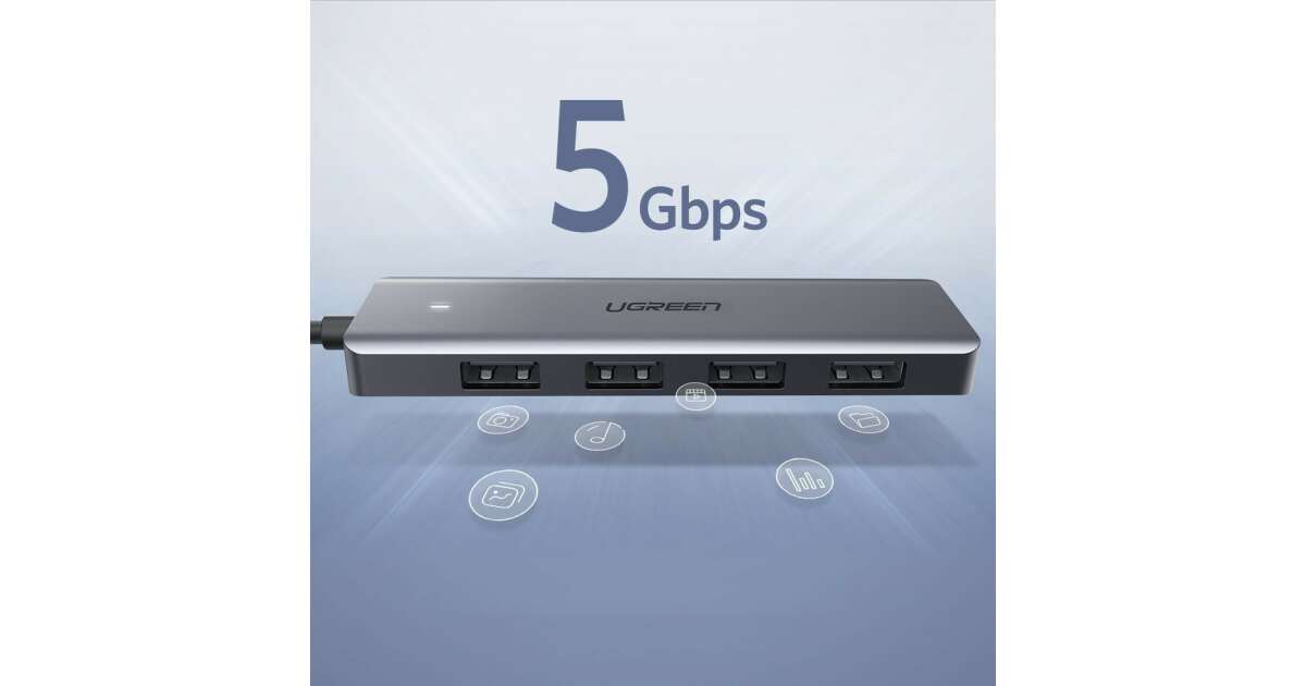 UGREEN 5-Port USB Hub: 4x USB 3.0 + 1x USB-C - Gyors adatátvitel és több eszköz csatlakoztatása ⚡️
