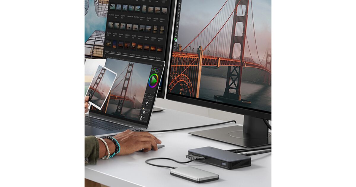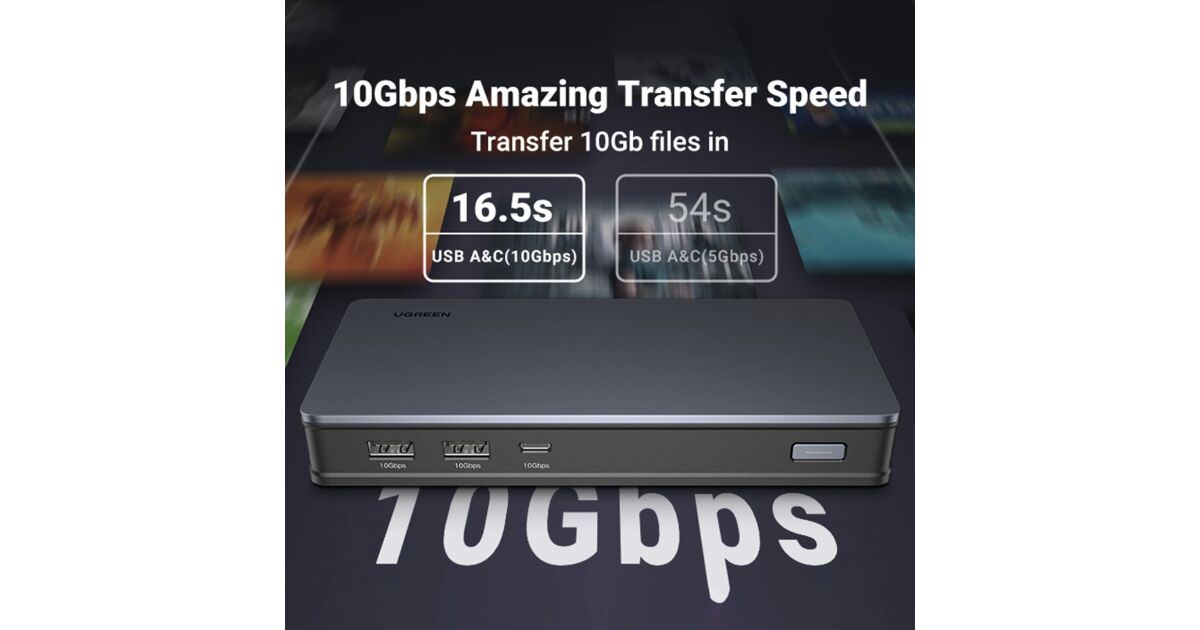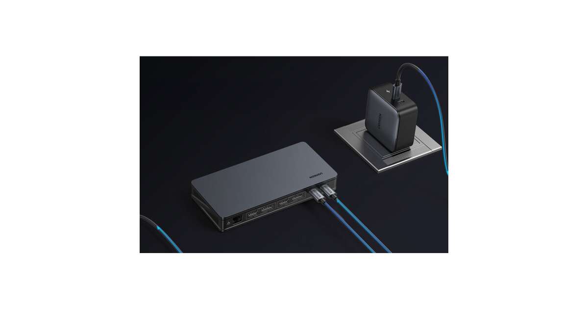 Ez az UGREEN CM615 USB-C dock egy sokoldalú eszköz, amely jelentősen növeli a munkaállomás hatékonyságát. Több porttal rendelkezik, így egyszerre több eszközt is csatlakoztathat, rendszerezve a munkahelyet.