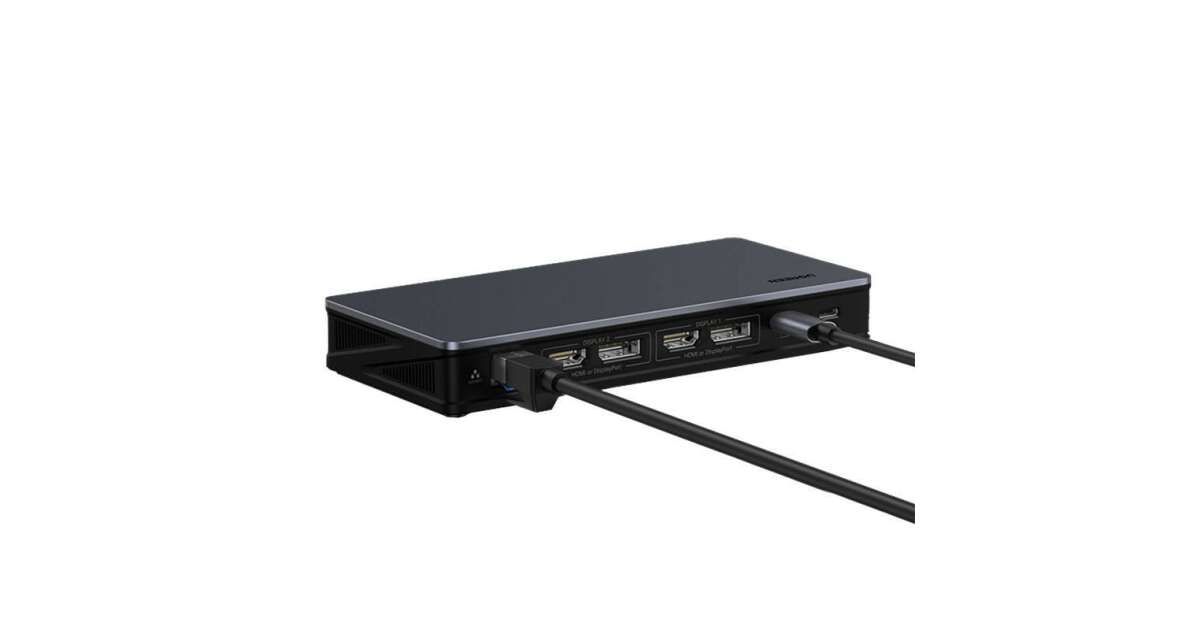 A két HDMI port 4K@60Hz felbontást támogat, így kristálytiszta képet biztosít prezentációkhoz vagy filmnézéshez.