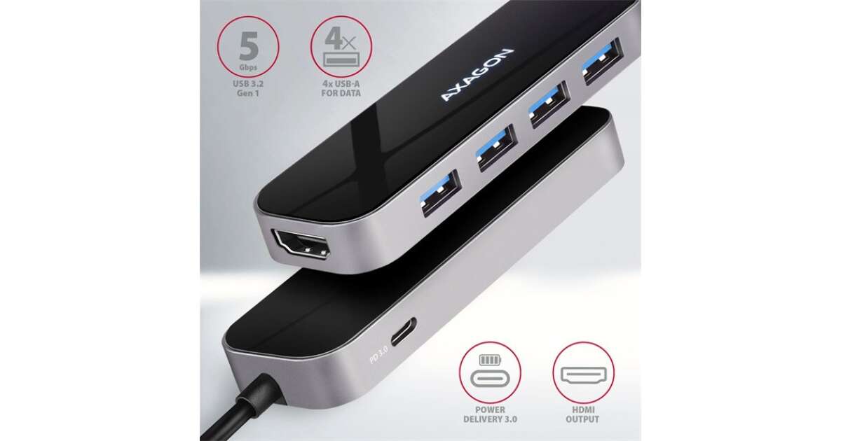 Axagon USB-C 6 az 1-ben Hub - 4x USB-A, HDMI, PD vásárlás: