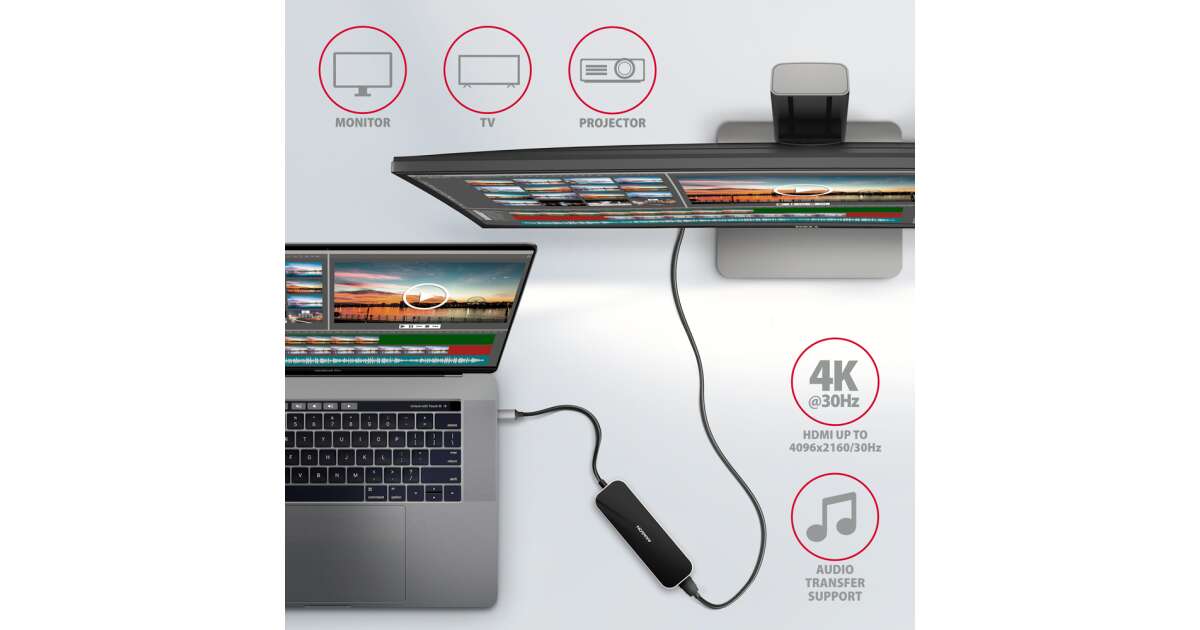 - Több monitor csatlakoztatása: Kiváló minőségű képet biztosít akár 4K/30Hz Ultra HD felbontásig, és támogatja a többcsatornás audioátvitelt. A népszerű játékfelbontások (WQHD, FullHD) is támogatottak.