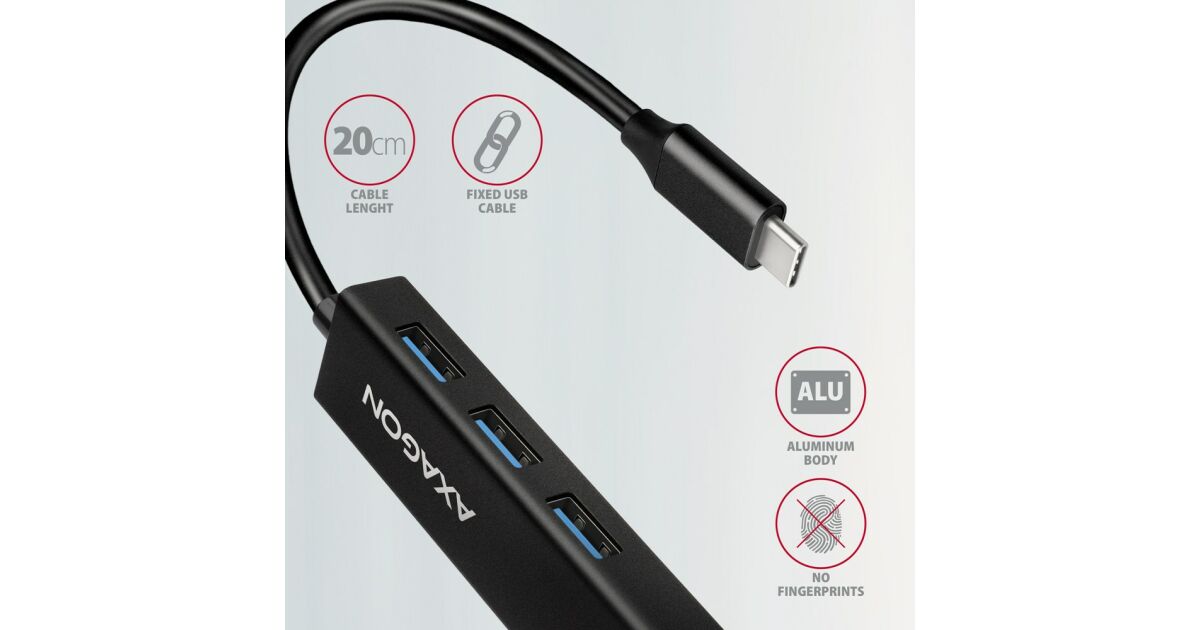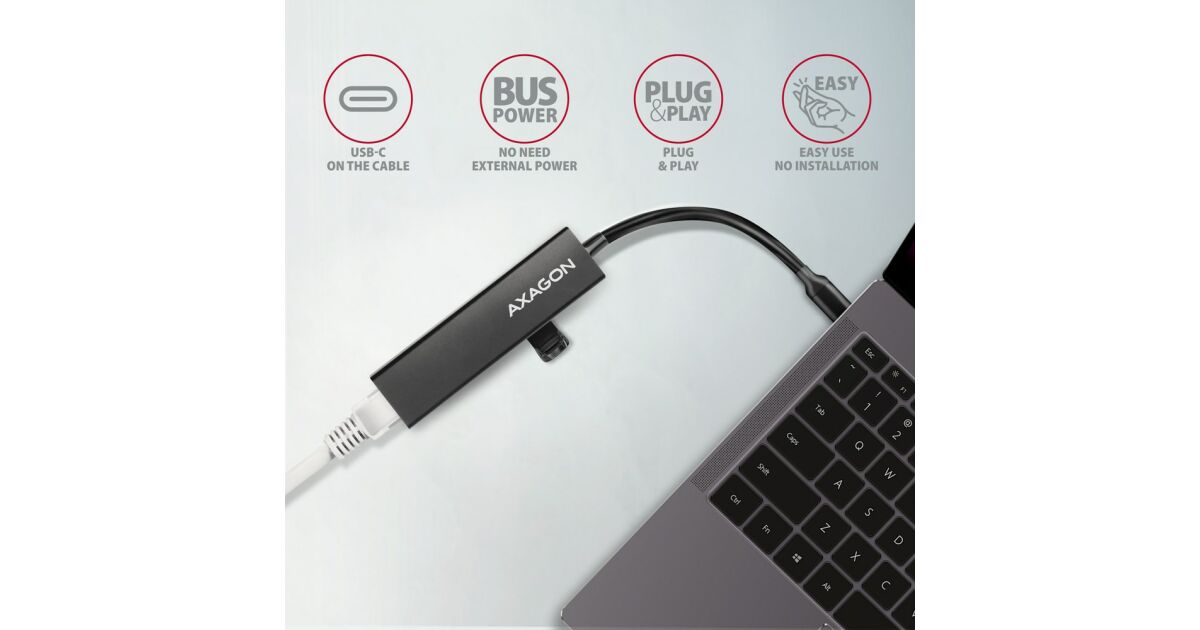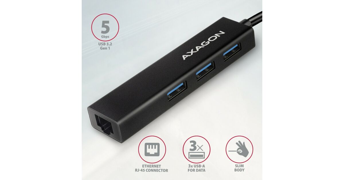 Axagon USB-C Hub: 3 USB-A port + Gigabit Ethernet RJ45