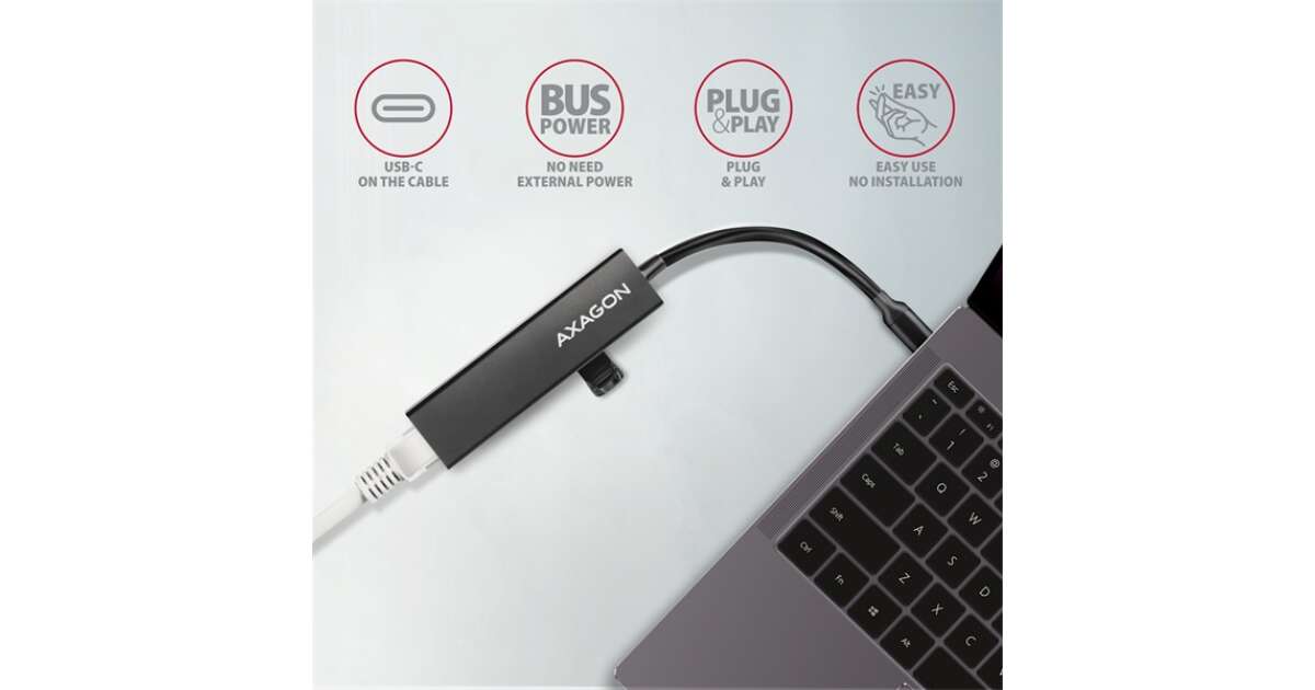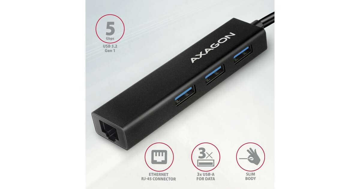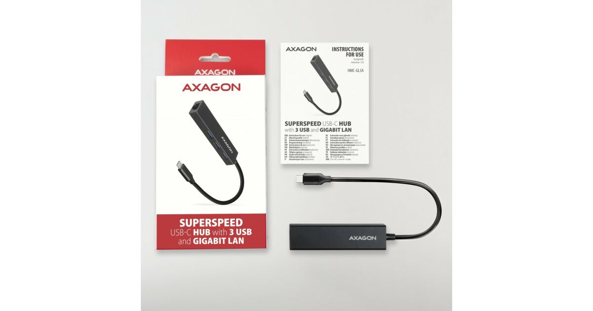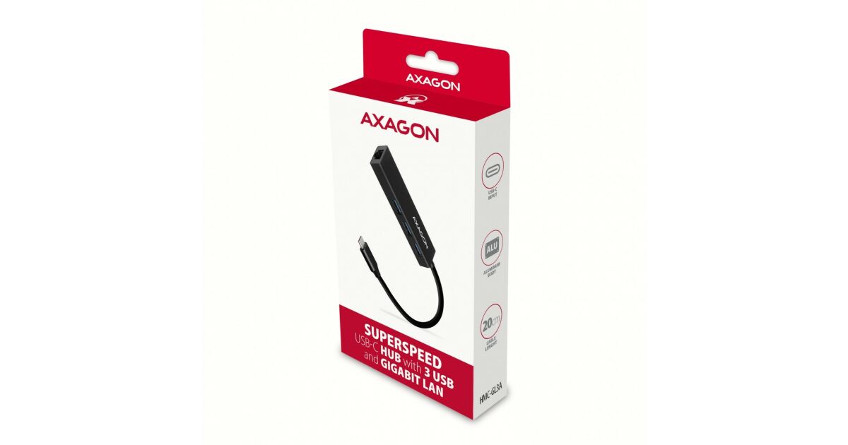 Axagon hmc-gl3a usb-c 3portos usb hub és gigabit ethernet rj45 lan, fekete HMC-GL3A vásárlás: