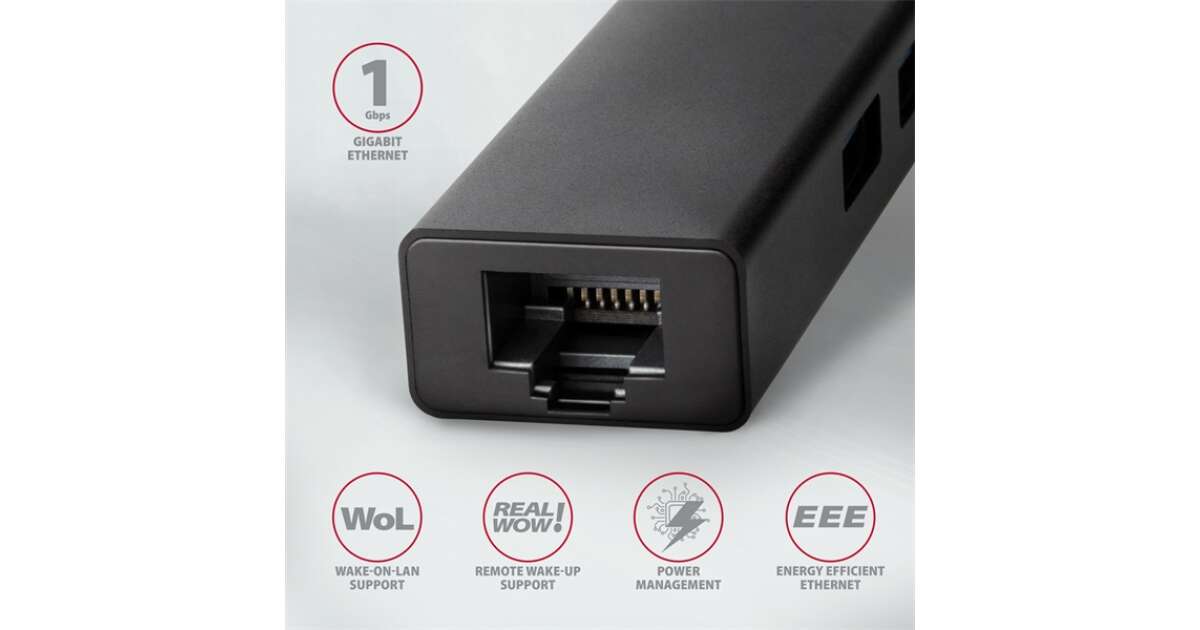 | Kimenet | 3x USB-A 3.2 Gen 1, 1x Gigabit Ethernet RJ45 |
