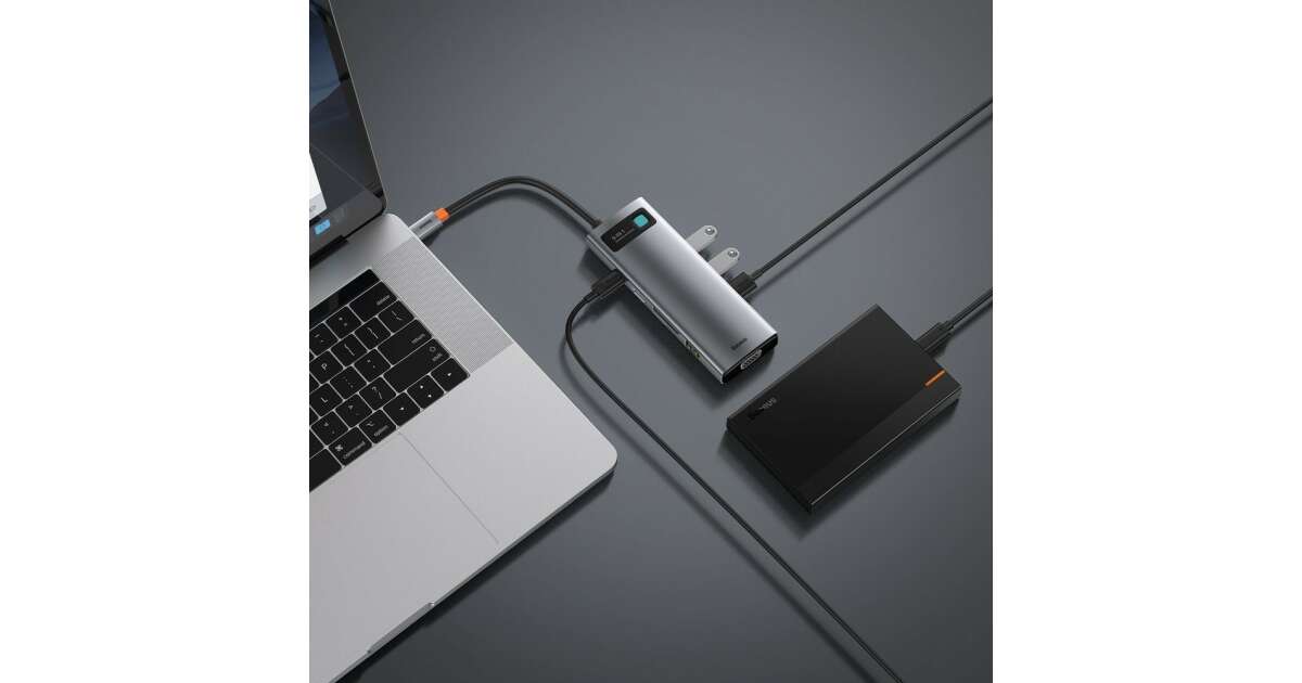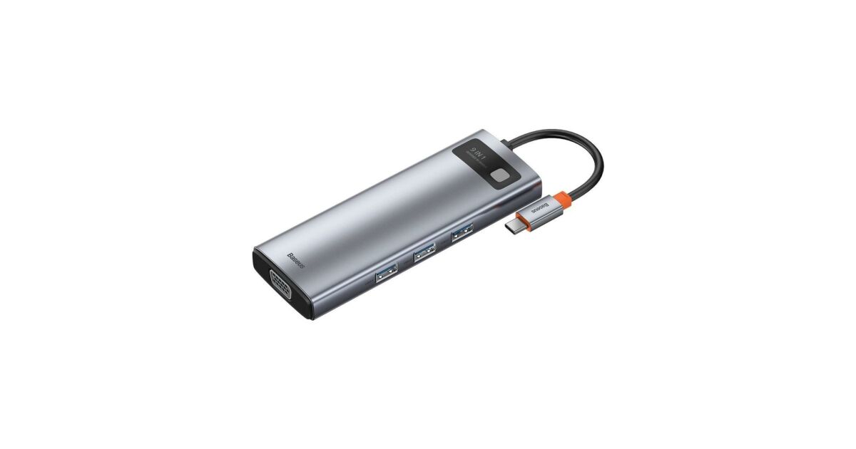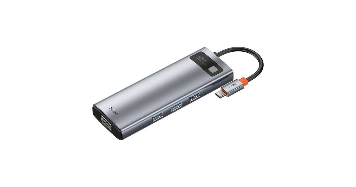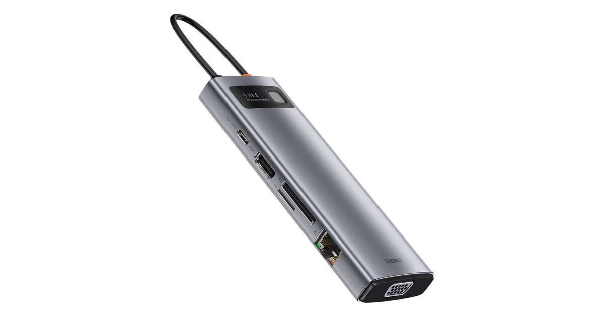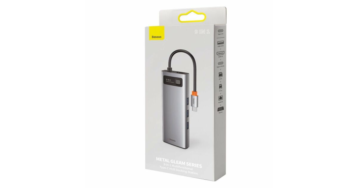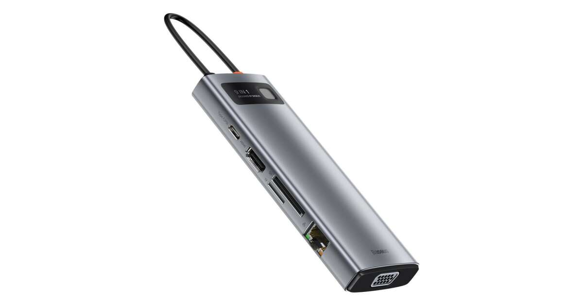 Ezt a terméket így is ismerheted: Baseus Metal Gleam Series 9in1 Hub USB-C - 3x USB 3.0 + HDMI + USB-C PD + Ethernet RJ45 + microSD / SD + VGA #szürke