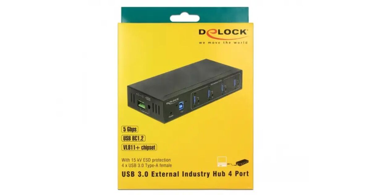 Delock 4 Port USB 3.0 Ipari Hub: Gyors, Robusztus és Biztonságos 🖥️
