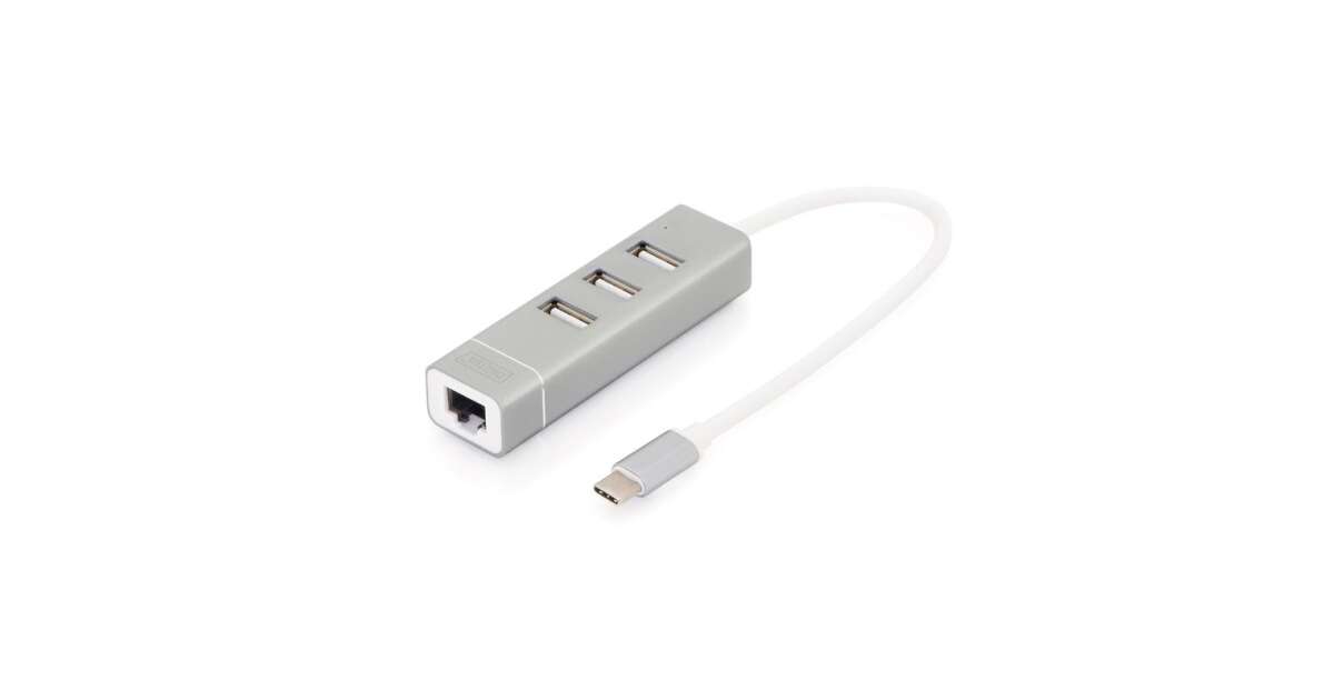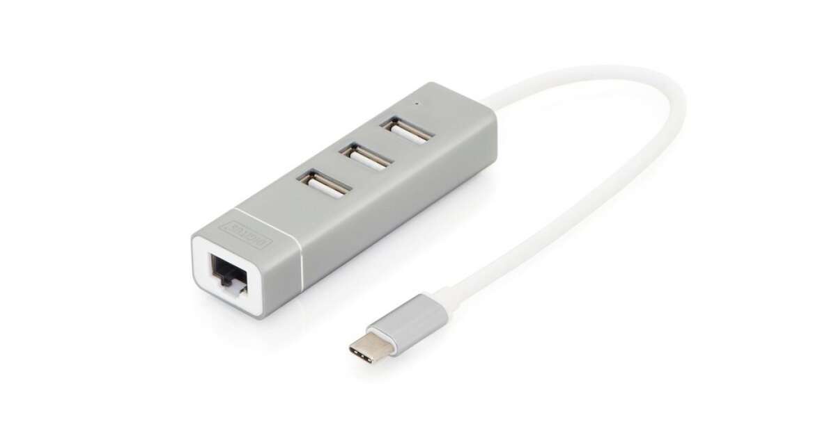 Ezt a terméket így is ismerheted: Digitus USB C Hub - 3 Port + Ethernet - Ezüst