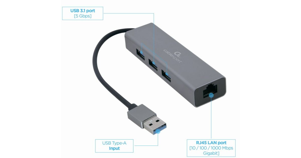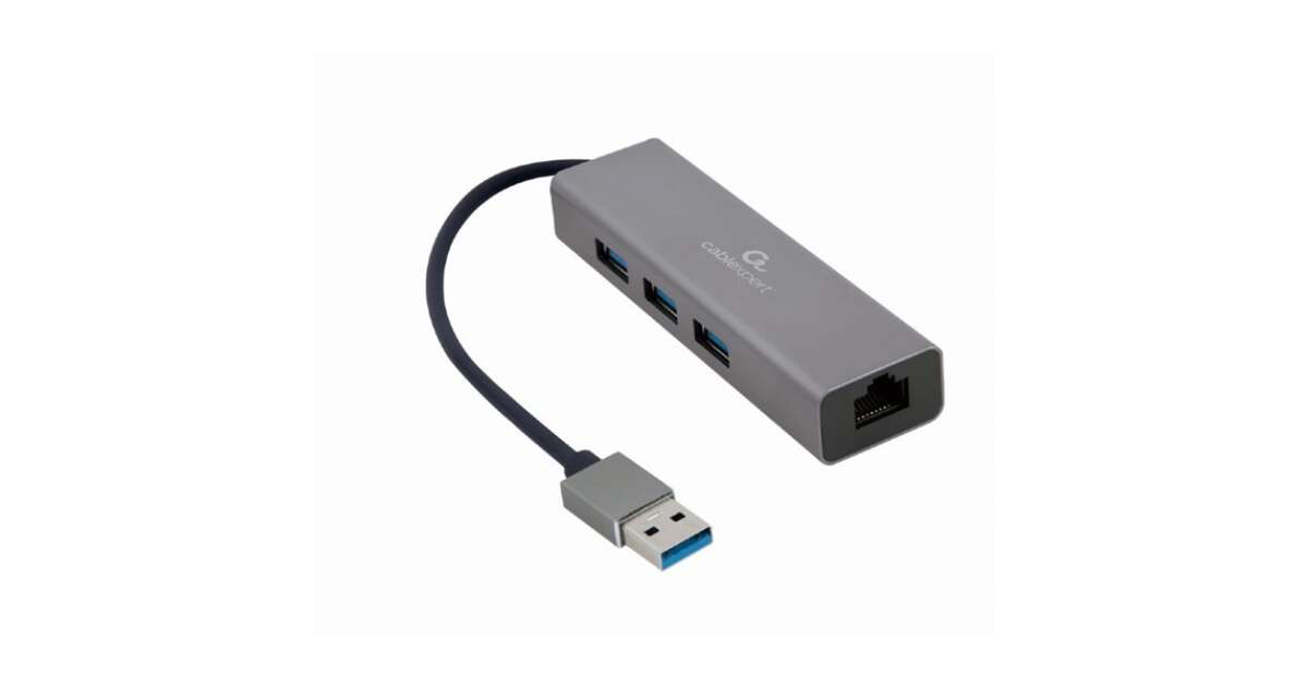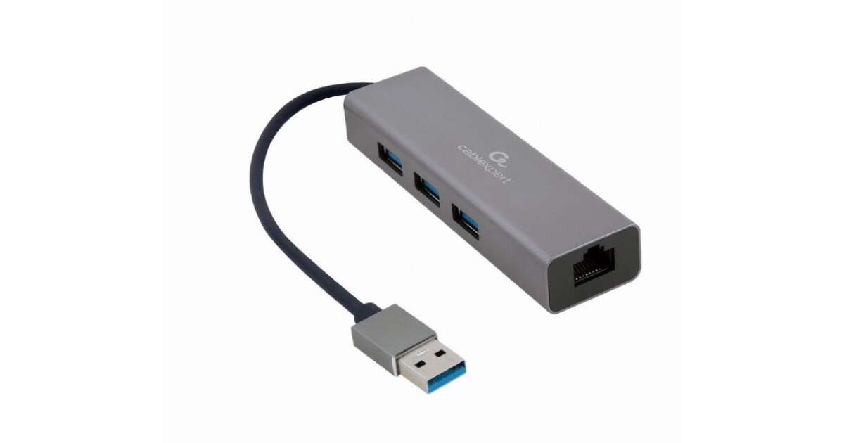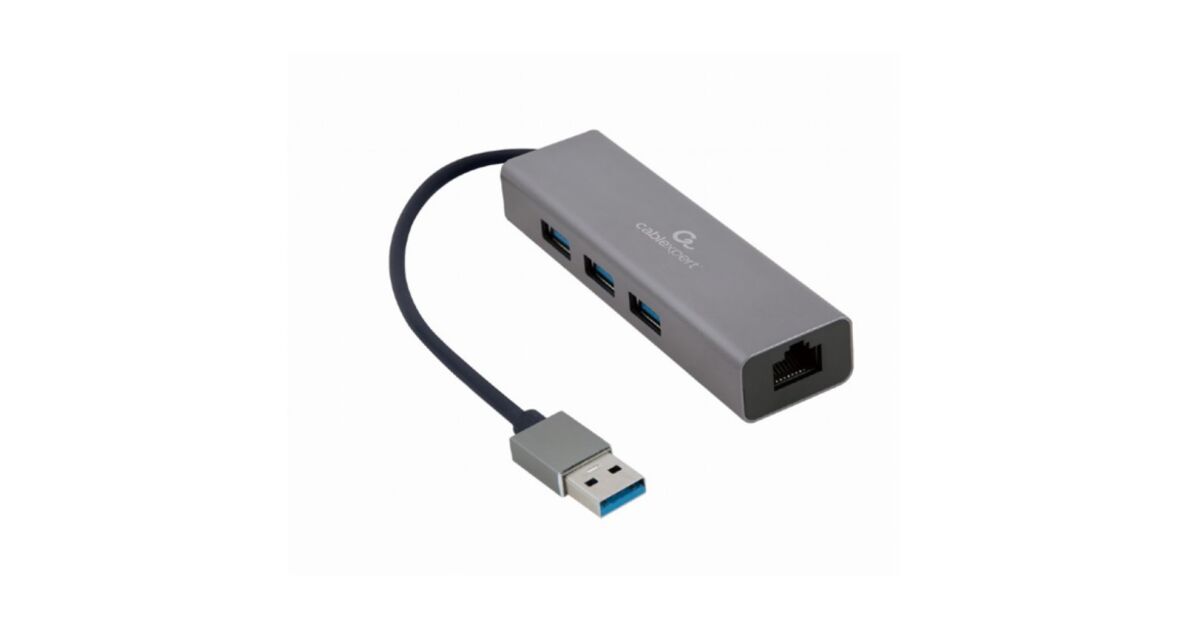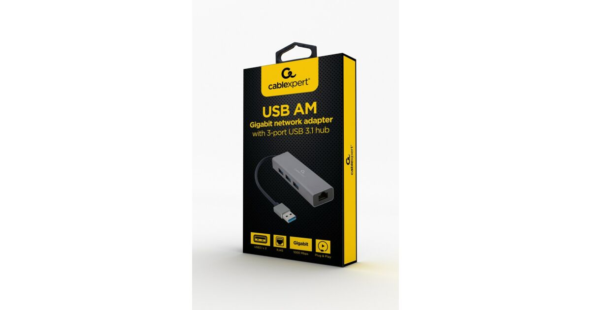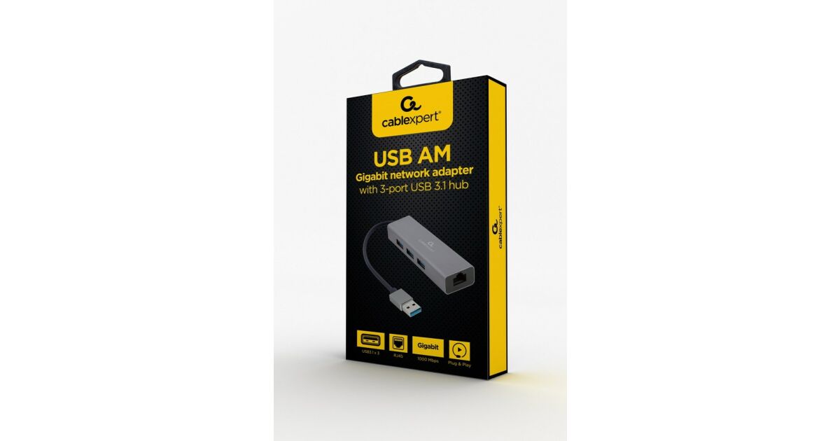 Gembird USB Gigabit Ethernet Adapter 3-portos USB 3.0 Hubbal
