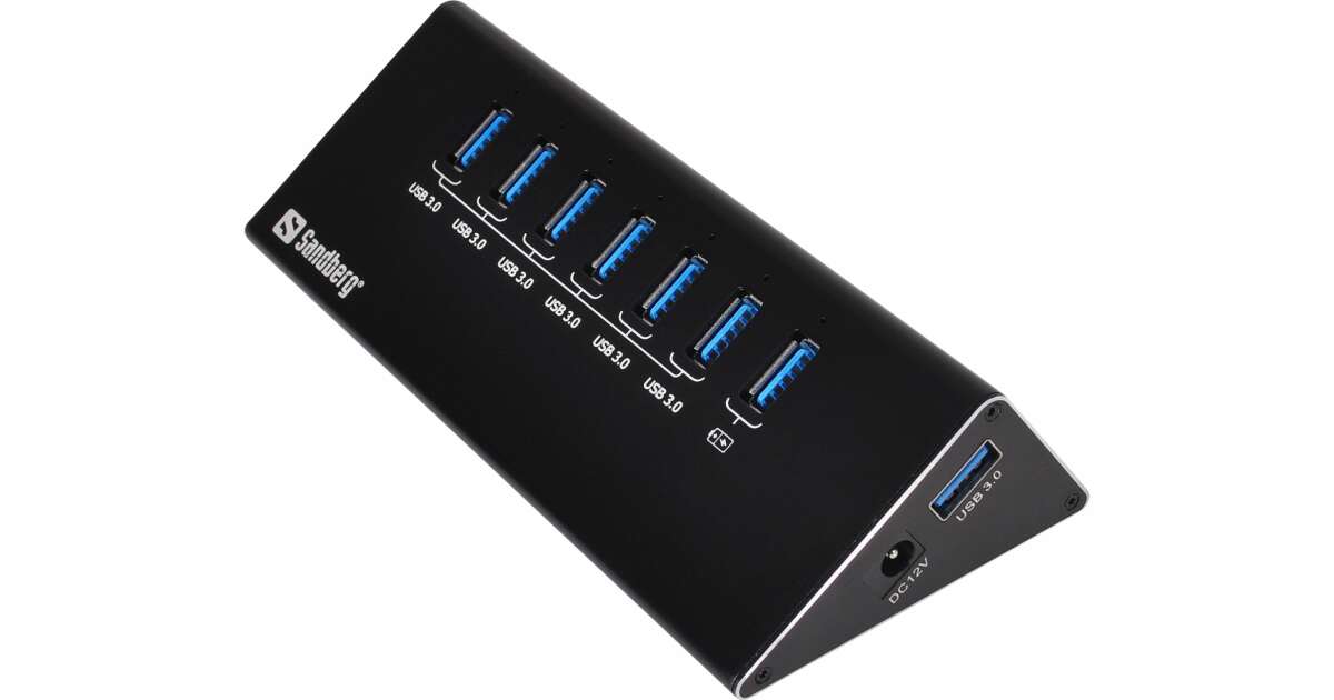 Sandberg USB Hub - USB3.0 Hub 6+1 port (fekete; 6adat + 1töltő port; 0,7m kábel; + power adapter) leírása