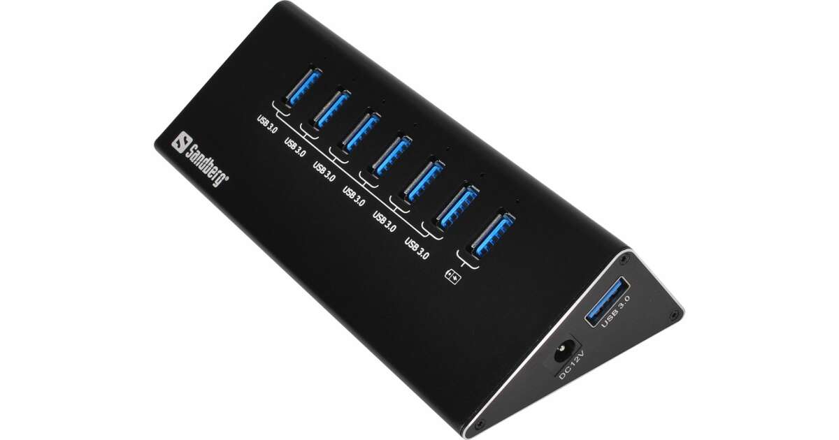 Ezt a terméket így is ismerheted: Sandberg USB Hub - USB3.0 Hub 6+1 port (fekete; 6adat + 1töltő port; 0,7m kábel; + power adapter)