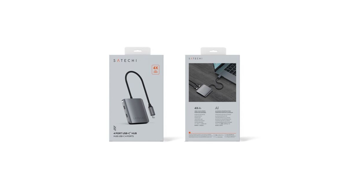 Élvezze a kényelmet és a sebességet! A Satechi 4-portos USB-C hub-bal könnyedén bővítheti eszközei csatlakozási lehetőségeit, és élvezheti a gyors adatátvitelt.