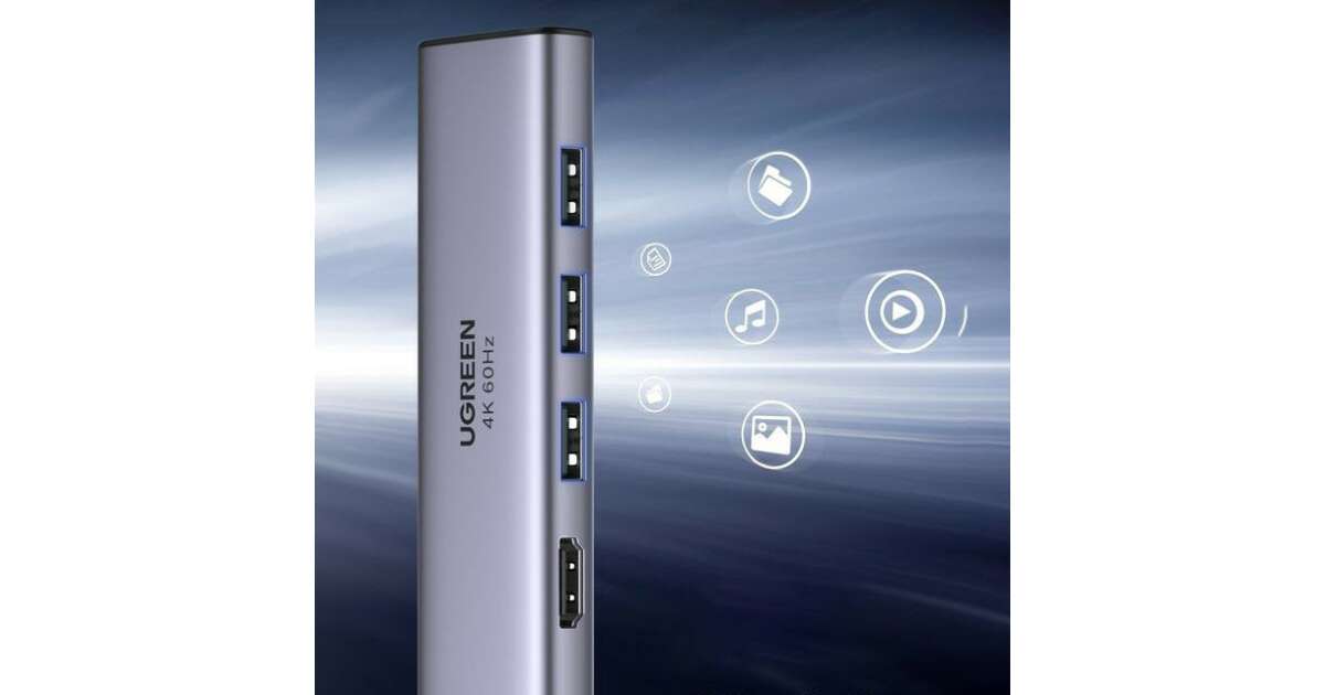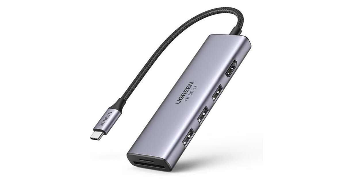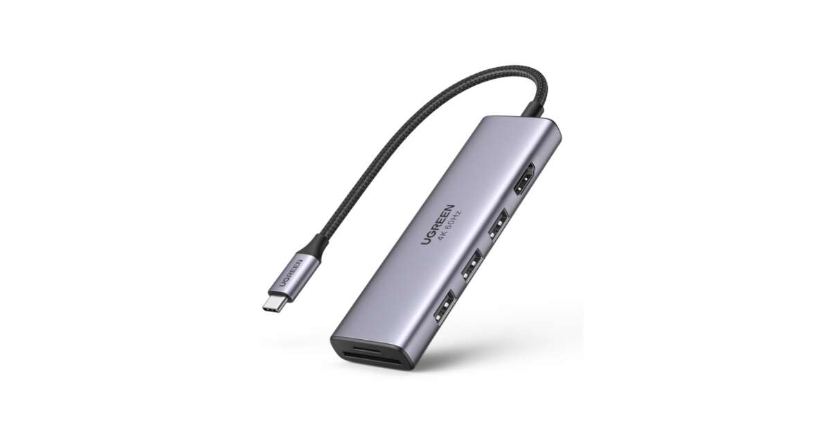 Ezt a terméket így is ismerheted: UGREEN CM511 5 az 1-ben adapter USB-C hub 3 porthoz USB3.0 + HDMI + TF / SD (szürke)