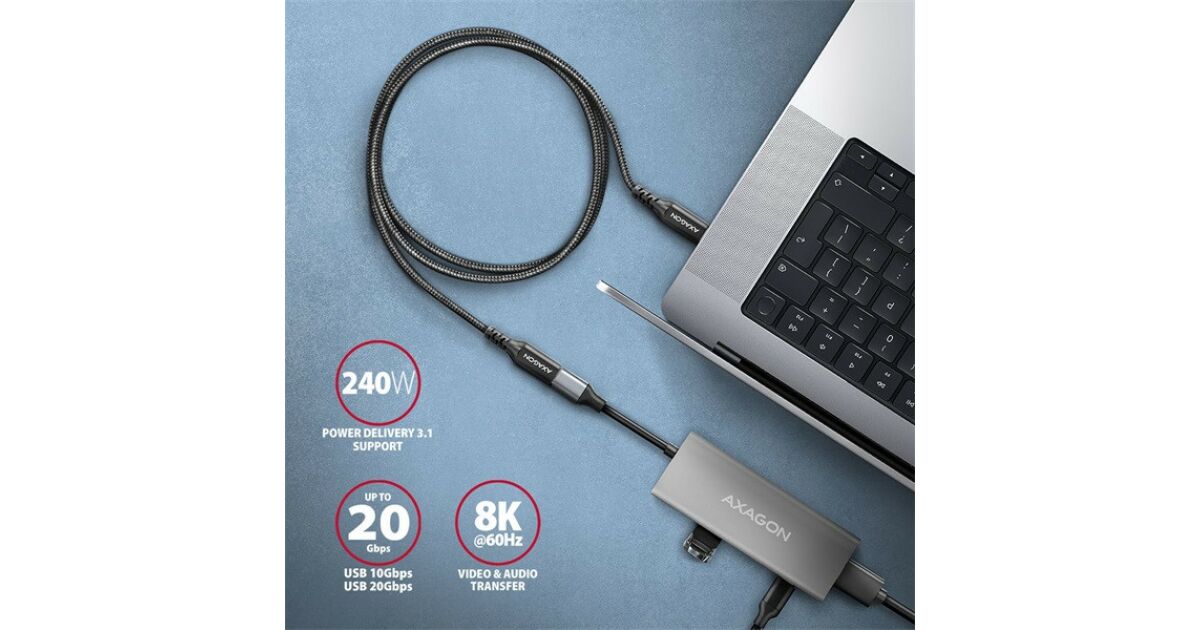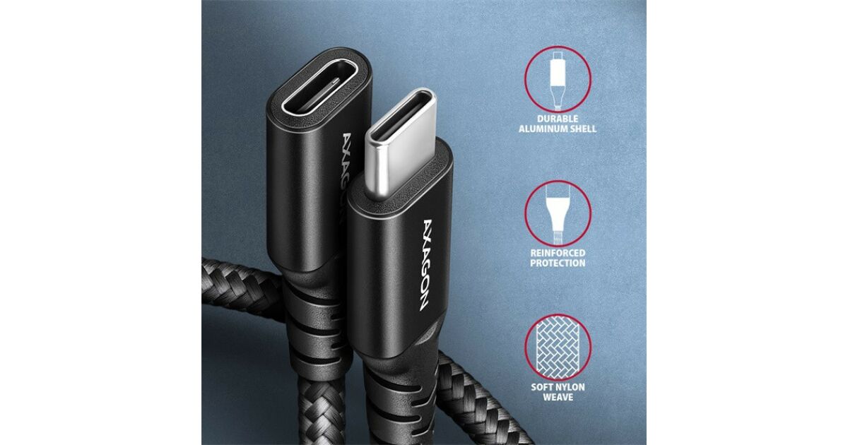 Ezt a terméket így is ismerheted: Axagon BUCM32-CF10AB USB-C Hosszabbító Kábel - 1m, 20Gbps, 240W
