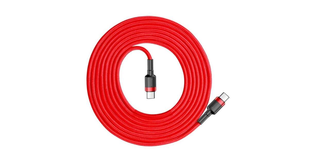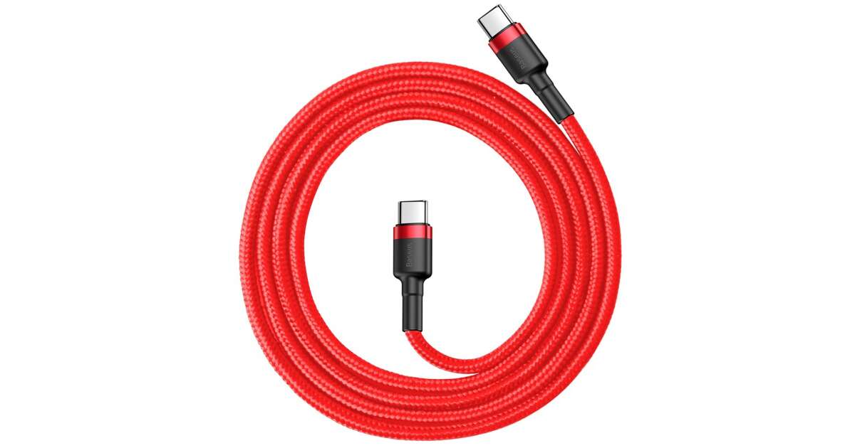 Baseus Cafule Kábel tartós nylon litzehuzal USB-C PD / USB-C PD PD2.0 60W 20V 3A QC3.0 2M piros (CATKLF-H09) leírása