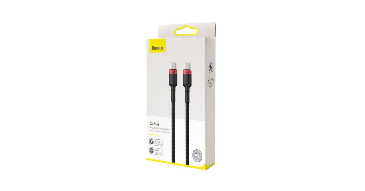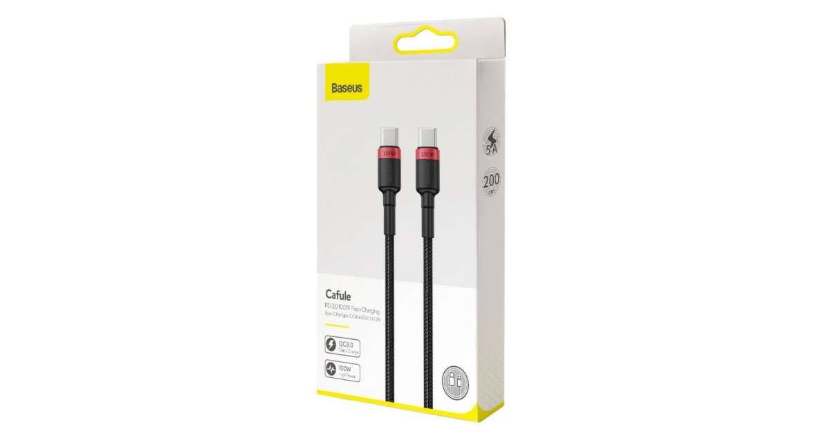 Baseus Cafule USB-C – USB-C kábel, QC 3.0, PD 2.0, 100 W, 5A, 2 m (piros-fekete) vásárlás: